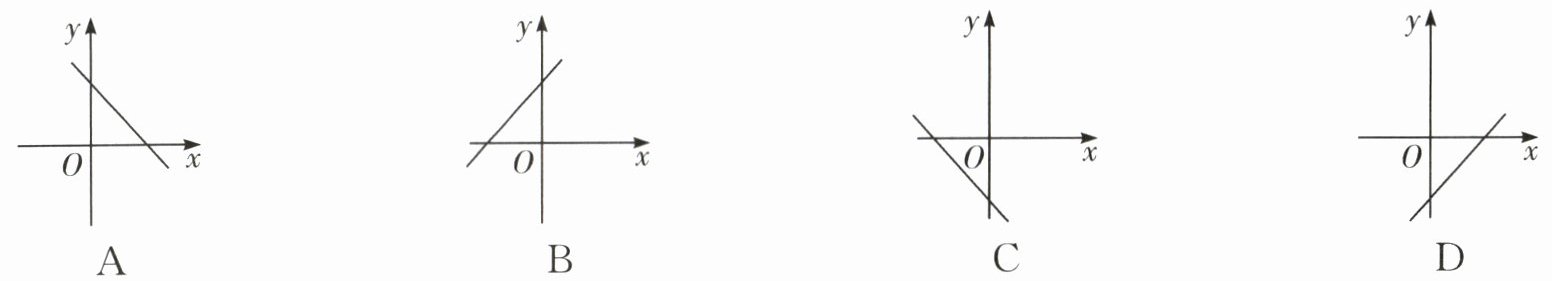 1.(教材P160习题T8·变式)若直线$y= kx+b$经过第一、二、四象限,则函数$y= bx-k$的大致图象是(
