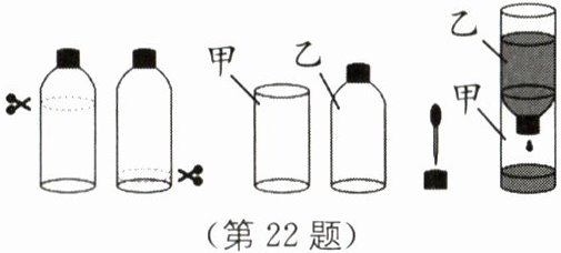 22.(4分)跨学科 制作水钟 科学制作小组准备制作一个"水钟"来计时,准备的实验材料有饮料瓶、打孔器、水、笔、纸条、钟表、剪刀等.实验步骤如图所示.