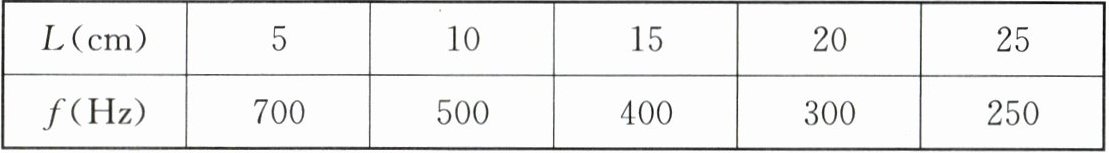 (1)由表格数据可知,随着铁棍长度的增加,振动频率逐渐降低,所以铁棍的长度L越长,发出声音的音调越低。