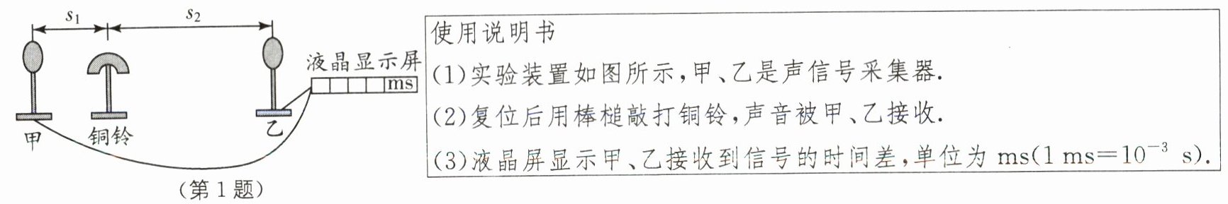 1.(2024·南通启东月考)如图、表所示为一声速测量仪器的实验装置图和使用说明书,阅读并回答问题.