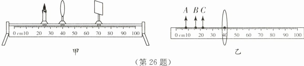 (2)蜡烛和透镜放在图甲所示刻度线处,左右移动光屏,光屏上
