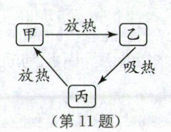 11. 固态的冰、液态的水和气态的水蒸气是水循环过程中水常见的三种状态,某同学据此画出了水的三态变化图,如图所示,甲、乙、丙分别代表水的三种状态.下列说法中正确的是(