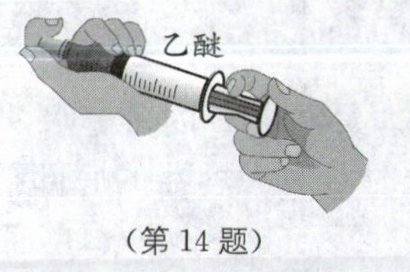 14. 如图所示,取一支大注射器,拉动活塞使注射器里吸进一些乙醚,用橡皮帽把注射器的小孔堵住,将活塞向外拉到一定程度后,注射器里的液态乙醚消失,这是