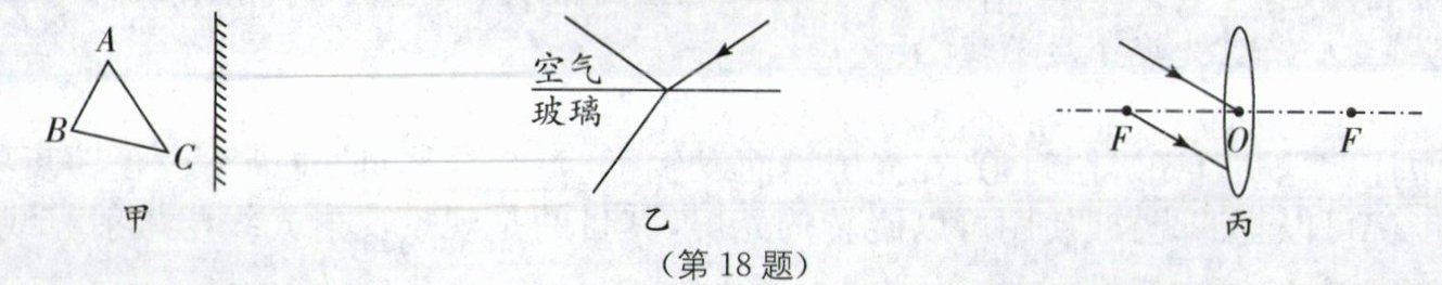 (1)如图甲所示,作出三角形ABC通过平面镜所成的像.
