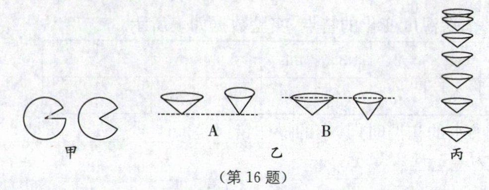 16. (4分)在"比较纸锥下落快慢"实验中,首先取两张等大的圆形纸,分别剪成两个大小不等的扇形,再将它们做成两个锥角不等的纸锥.
