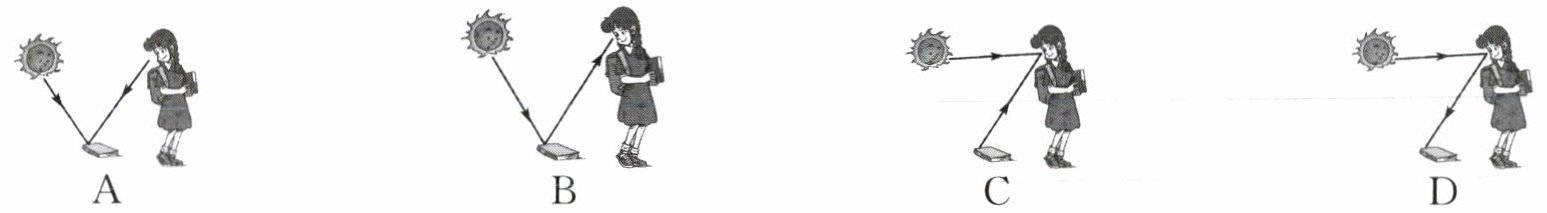 B[解析]我们能够看见不发光的物体,是因为物体反射的光进入了我们的眼睛,根据选项可知,B正确.