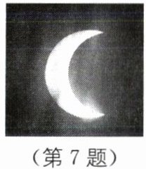 7.如图所示是摄影爱好者拍摄的日偏食景象.此时,若将太阳光垂直照射在纸板上一个很小的"△"孔上,那么在地面形成的光斑形状是(