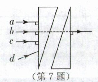 7. 将一长方形玻璃砖沿对角线切开,并分开一段距离放置,如图所示.四条光线沿如图所示位置入射,能得到右边出射光线的只能是( ).