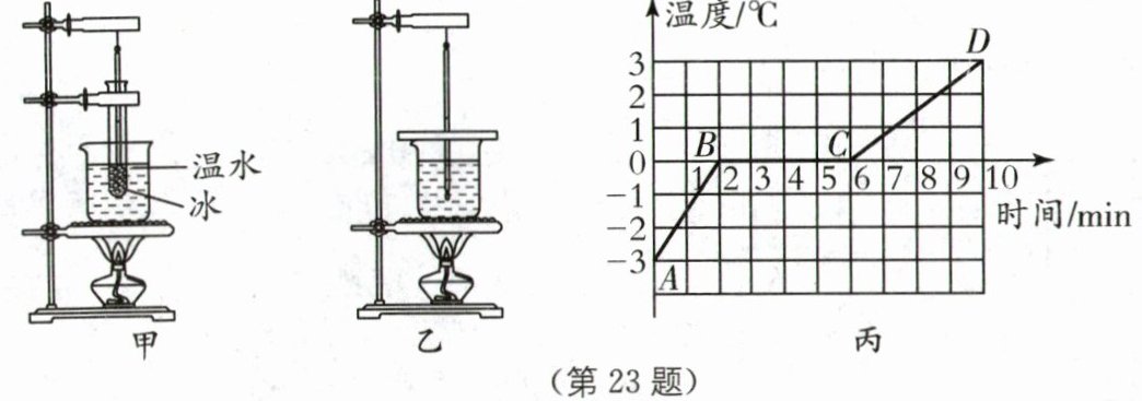 (3)图乙实验装置中纸板的主要作用是减少热量散失;由图丙可以看出冰熔化过程中温度不变,即冰有一定的熔点,因此可以看出冰是晶体;冰从第2 min开始熔化,到第6 min熔化结束,因此可知冰熔化的时间为6 min - 2 min = 4 min.