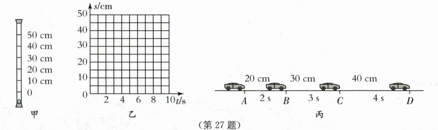 27. (5分)小明小组"研究充水玻璃管中气泡的运动规律"实验装置.