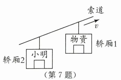 7. 如图所示,是小明在某景区乘坐索道的场景,两个轿厢随索道以速度v向上运行,如果说轿厢1中的物资是运动的,所选取的参照物是(