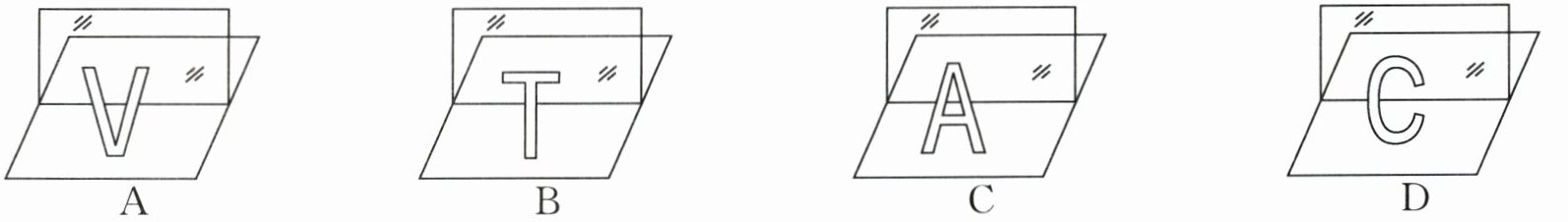 D [解析]由图可知,四个模型分别为V、T、A、C,从模型上看,只有C左右不同,而V、T、A左右相同,所以,当小明把四个模型分别面对玻璃板直立在桌面上,用模型A、T、V不能达到实验目的,只有C左右不同,所以能够达到实验目的.