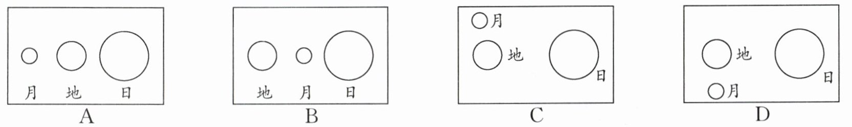 8.(2024·连云港期中)在某些地区出现了日全食,如图所示是当时地球上观察者看到的日食景象.此时日、地、月三者的相对位置示意图,正确的是(