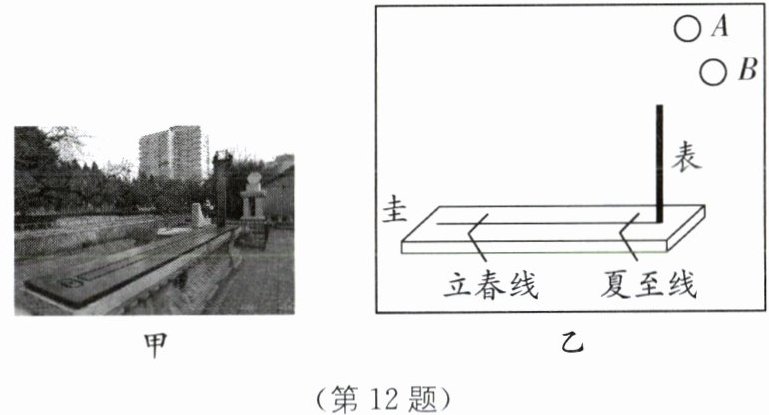 12.传统文化 古代天文仪器圭表 (2024·连云港期中)圭表是中国古代重要的天文仪器,如图甲所示,圭表通过测量一年中每日正午时日影长度来推测二十四节气,日影是光的