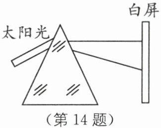 14.教材P37图2-3·改编(2024·泰州姜堰区期中)一束太阳光通过三棱镜后,被分解成七种颜色的光,如图所示,这种现象叫作光的