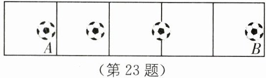 23. 如图所示是一个五人制足球(直径约为22 cm)离开脚,在客厅砖面水平向前滚动,每隔0.2 s拍摄一次频闪照片的俯视图.A、B两点为足球滚动过程中经过的两个点,已知铺客厅的正方形瓷砖有40 cm×40 cm、60 cm×60 cm和100 cm×100 cm三种规格.由图估算可以判断出:这个客厅正方形瓷砖边长为