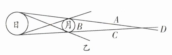 色散 二 B [解析]“人工虹”是太阳光的色散现象;由记载可知,要背着阳光方向喷水才能看到彩虹,因此按图甲中方法二喷水时可以看到彩虹;照射到地球的光线完全被月球遮住后才能形成日全食,因此在图乙中B区域会看到日全食。