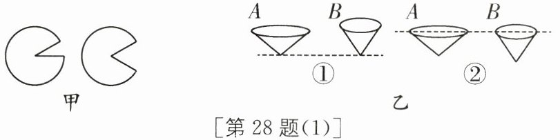 (1)将如图甲所示两个等大的圆纸片,各裁去一个扇形,做成如图A、B所示的两个锥角不等的纸锥.应选择图乙__________(填"①"或"②")所示的位置,将两个纸锥从同一高度同时释放,通过比较下落至地面的__________来比较纸锥下落的快慢,这种比较方法实质是__________(填"相同时间比路程"或"相同路程比时间").