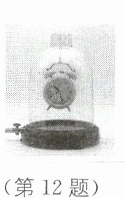 12.(2025·盐城阜宁县期末改编)如图所示,小明将正在发声的闹铃悬挂在与抽气机相连的密闭玻璃罩内,用抽气机不停地向外抽气,经过较长的时间后,发现