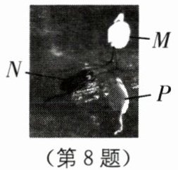 8.如图所示,阳光下,一只鸟M站在平静的水中。以下说法正确的是(