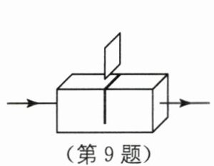 9.如图所示是一个魔术箱。魔术箱顶部的中央有一条窄缝,使激光笔产生的激光束从左侧的小孔射入,从右侧小孔射出。将一块遮光板从顶部的窄缝插入箱中,遮光板并没有挡住激光束的传播。下列关于魔术箱的内部结构,说法正确的是( )。