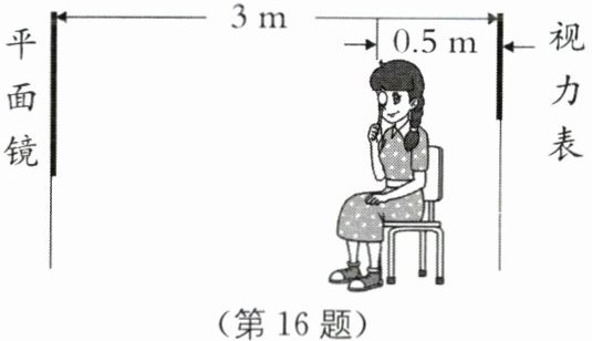 16.如图所示是小丽体检检查视力时的情境,她背对视力表、面朝平面镜而坐。则她到平面镜中“视力表”的距离为
