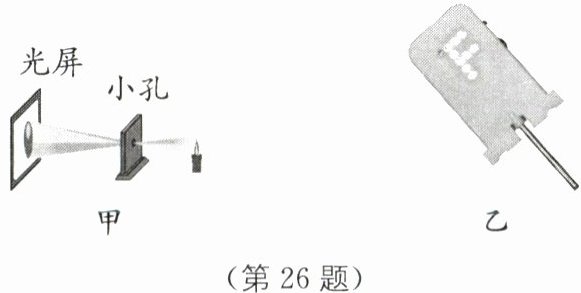 (2)小孔成像,成的是倒立的实像,实验过程中蜡烛燃烧不断缩短,导致光屏上烛焰的像向上移动.若将蜡烛靠近小孔近一些,据光的直线传播知,烛焰的像将变大.若只将小圆孔改为三角形小孔,则像的形状不变,因为小孔所成的像的形状与物体的形状有关,与孔的形状无关.