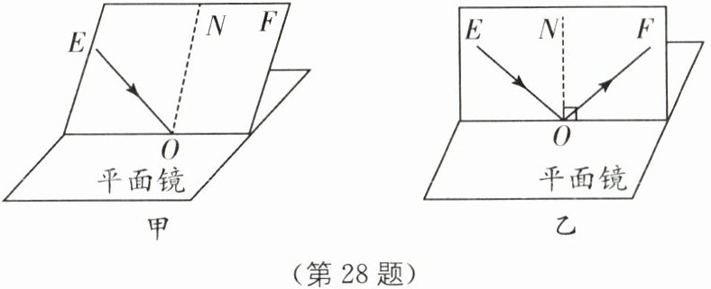 (1)如图甲所示,小明将平面镜水平放置,将一束光斜射到平面镜上,尝试用一块白板ENF去寻找入射光和反射光,当白板与平面镜