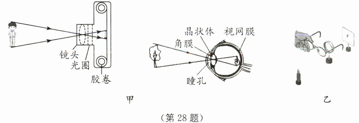 28. (7分)观察法在以“眼睛和眼镜”为主题的跨学科实践活动中: