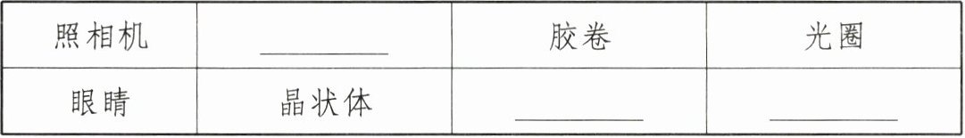 (1)学习小组对于眼睛视物原理进行了探究实践.请你观察图甲中照相机和眼睛的构造,把照相机与眼睛功能类似的部分填入表格中.