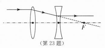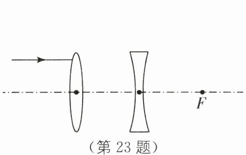 23. (2分)如图所示,两透镜右侧的焦点正好重合,一条光线平行于主光轴射向凸透镜,请画出光线经过两个透镜的光路.