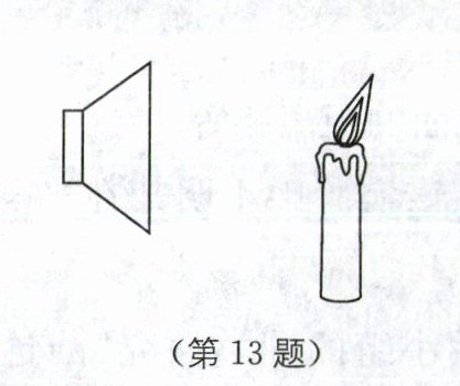 13. 教材 P15 图 1-9·改编 (2024·常州中考)如图所示,将点燃的蜡烛放在发声喇叭前方,可以看到烛焰随着声音晃动.喇叭的纸盆由于