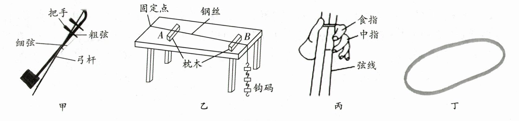(填序号)进行实验,在实验过程中,将实验中的钢丝改成如图丁所示的橡皮筋重复实验,对此操作进行评价是没有控制弦的粗细一定,对实验探究有影响