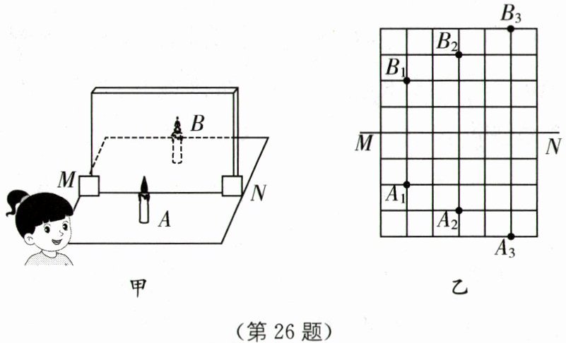 (3)由图乙可知,将方格纸沿着MN对折,像与物所在点重合,得到像和物到镜面的距离相等.