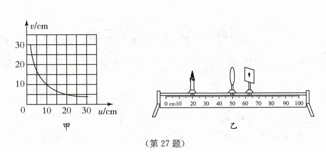 (1)如图甲所示为凸透镜成像的物距和像距的对应关系,u 表示物距,v 表示像距,此凸透镜的焦距为__________cm.