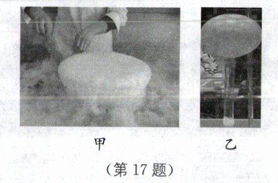 17.如图甲所示是用干冰(固态二氧化碳)做物态变化实验时的情景.把干冰放在敞口的容器中,会发现在周围出现大量“白雾”,“白雾”是由