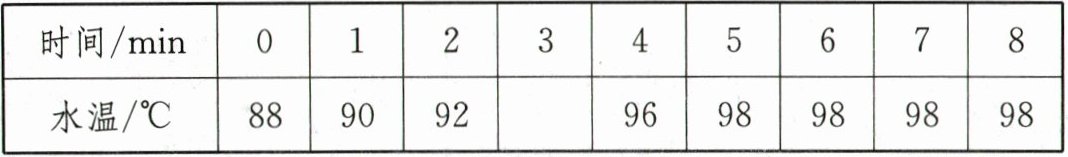 (3)由图可知,当水温达到$98^{\circ }C$之后就不再变化,所以水的沸点是$98^{\circ }C$。