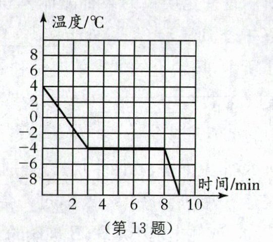 13. (2025·盐城经开区期末)小虎将盛有盐水的玻璃杯放入冰箱,研究盐水的凝固过程.每隔1 min,小虎就观察盐水状态并测出温度,绘制了凝固时温度随时间变化的图像,如图所示.