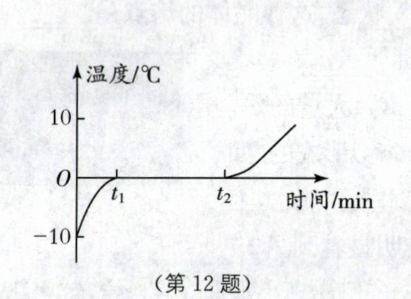 11.升华 吸 凝华 [解析]玻璃泡内碘颗粒消失、出现紫红色碘蒸气,是碘从固态到气态的升华过程,升华需要吸热;而碘蒸气逐渐消失,同时出现碘颗粒,是碘从气态到固态的凝华过程.