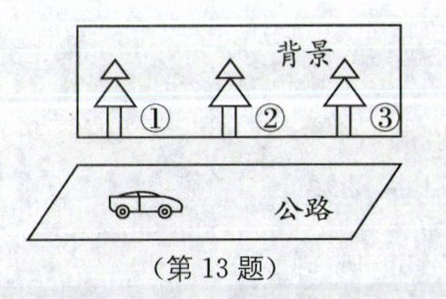 13. 变式提优·B卷T22 新情境 拍摄模型汽车运动的视频 (2024·盐城东台期末)在学习《物体的运动》一章后,老师要求同学手绘背景纸,用手机拍摄模型汽车在公路上持续向右运动的视频.小明首先在纸上绘制好公路背景,如图所示.若将手机固定不动,拍摄时可保持