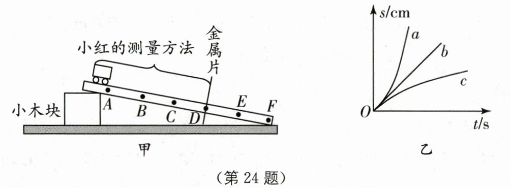 24.(7分)(2025·南通如皋期末)某小组在“测量物体运动的平均速度”实验时,从A点到F点每隔20 cm做标记,每次都让小车从斜面的同一高度由静止释放,并在相应的位置放置一金属片,通过观察小车撞击到金属片来停止计时.