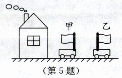 5.观察图中的烟和小旗,关于甲、乙两车相对于地面上房子的运动情况,下列说法中正确的是(