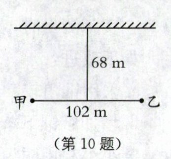 10.(2024·徐州沛县期中)甲、乙两人站在一堵光滑的墙壁前,两人之间相距102 m,且距离墙壁均为68 m.如图所示.甲开了一枪后,乙先后听到两声枪响之间的时间间隔为(已知空气中声音的传播速度为340 m/s)( ).