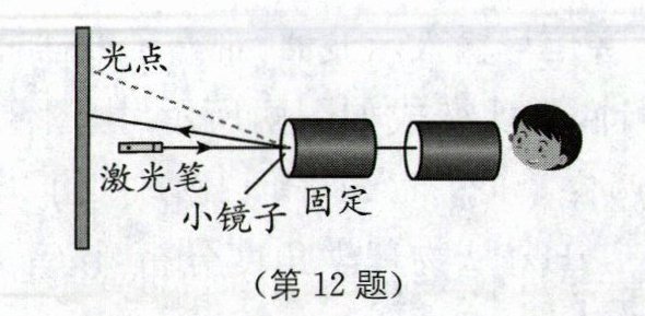 12.(2024·无锡江阴期中)如图所示是小明探究“看到”自己声音的实验.把两个纸杯底部用棉线连接起来,固定其中一个纸杯,在纸杯口上蒙上胶膜,膜上粘一片小平面镜,拉紧棉线,将激光笔发出的光照射在平面镜上,小明对另一纸杯说话(不接触纸杯),会看到墙上反射的光点在晃动.小明发出的声音是由声带