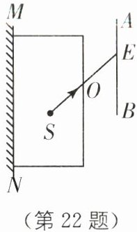 22.(3分)(2025·辽宁朝阳建平县期末)如图所示,小明制作了一个暗盒,在暗盒的左侧放一平面镜MN,右侧有一个小孔O,暗盒内部有一光源S,在暗盒的右侧放置的光屏AB上得到两个亮点,图中已经画出了一个亮点E及其光路,请把另一个亮点F及其光路图画出来.