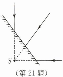 21.(3分)(2025·四川广安华蓥期末)三条入射光线会聚于S点.现在S点之前任意放一平面镜,如图所示.请利用光反射时光路的可逆性和平面镜成像的特点进行作图,画出三条入射光线在平面镜上反射后对应的反射光线.(保留作图痕迹)
