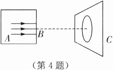 C [解析]当在B处嵌入一个凹透镜时,因为凹透镜对光线有发散作用,所以圆形光斑要比圆孔B大;当在B处嵌入一个焦距较小的凸透镜时,因为凸透镜对光线有会聚作用,所以光线在BC之间会聚,之后光继续传播,则得到的圆形光斑可能比圆孔B大.