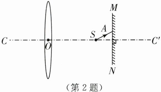 2.(2025·宿迁宿豫区期末)如图所示,平面镜MN垂直于凸透镜的主光轴CC',点光源S位于主光轴上,光线SA经平面镜反射和透镜折射后与主光轴平行.已知S到透镜和平面镜的距离分别是12 cm、4 cm,则此透镜的焦距是(