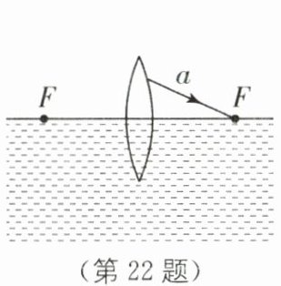22.(5分)(2024·宿迁宿城区期中)如图所示,水面是凸透镜的主光轴,F是其焦点.请在图中作出a光线的入射光线和它进入水中折射光线的大致位置.