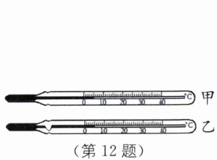 12.(2024·泰州兴化期中)疫苗需保存在低于8℃的环境中.夏季,运输过程中为监测疫苗温度是否超标,应在冷藏箱内放置如图__________(填"甲"或"乙")所示的温度计.在接收点,为正确读数,验收人员__________(填"能"或"不能")把温度计从冷藏箱中取出读数;如图所示,温度计的示数是__________℃,表明疫苗__________(填"安全"或"不安全").
